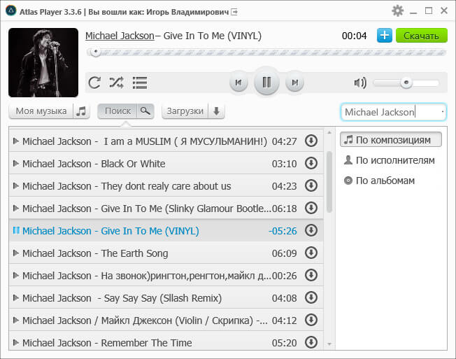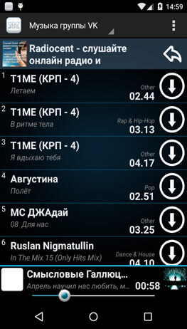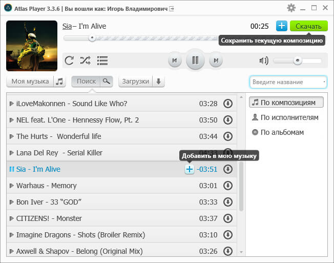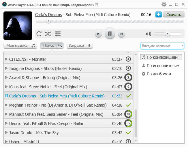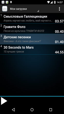 Быстрое скачивание и загрузкаДостаточно лишь кликнуть по треку справа для постановки его в очередь на загрузку. Файлы будут скачиваться последовательно один за другим и станут доступны для прослушивания оффлайн